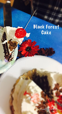 My husband's birthday was in the recent past. I try to make birthdays special by making a cake from scratch for each of my family member. Even though we are not much of sweet eaters, my husband would be appreciative of a nicely made cake. I decided to make a Black Forest Cake as it is moist and delicious! Most importantly it is easy to make. This also happens to be one of the first cakes that I attempted 4-5 years ago when I first started baking. I must admit that it has been a learning curve and that I have learnt much since then about baking cakes.
